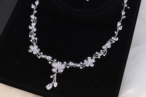 フェッテ・ネックレス・イヤリングorピアスセット ウェディングアクセサリー czダイヤ (npe0015)