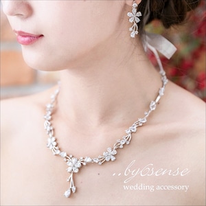 フェッテ・ネックレス・イヤリングORピアスセット ウェディングアクセサリー czダイヤ (npe0015